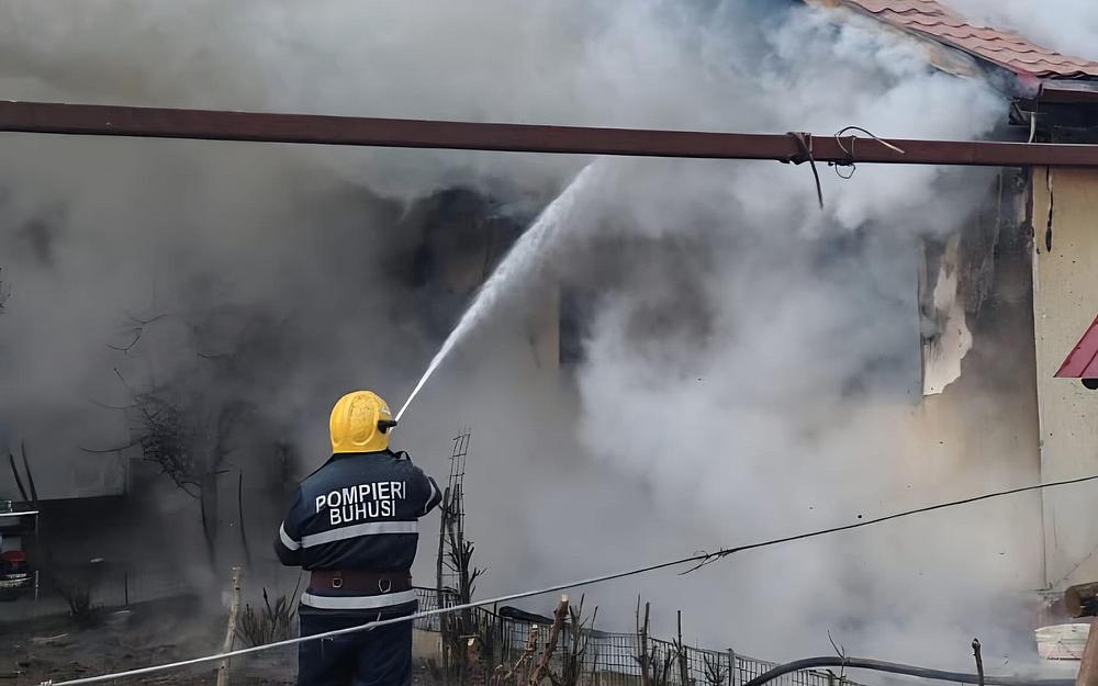 În aceste momente, pompierii militari intervin pentru stingerea unui incendiu izbucnit la o locuință din comuna Gârleni, sat Gârleni.