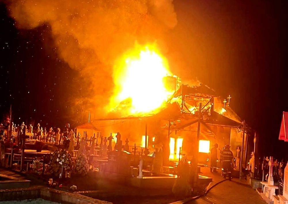 Flăcările au mistuit întreaga biserică și bunurile din interior, pe o suprafață totală de circa 250 de metri pătrați. În urma primelor verificări, cauza probabilă a incendiului a fost un scurtcircuit electric.