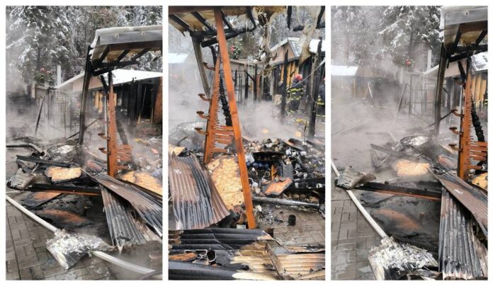 În această dimineață, în jurul orei 7:00, un apel la numărul unic de urgență 112 a anunțat producerea unui incendiu la magazinele de artizanat situate în zona Cascada din Slănic Moldova.