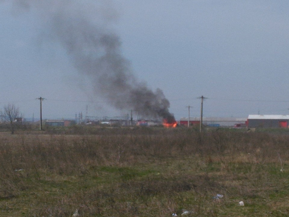 La fata locului au ajuns pompierii care incearca sa stinga focul.