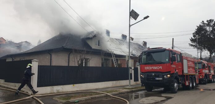Focul a cuprins o casă tip duplex și, conform pompierilor, se manifesta pe o suprafață de 200 mp.