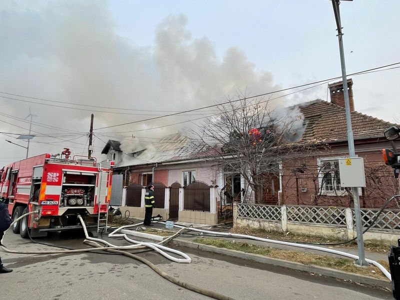 Incendiul a fost lichidat la ora 10:45, s-a manifestat la acoperișul unui un grup de locuințe pe cca. 500 mp. Se lucrează la măsuri complementare. Cauza este în curs de stabilire.