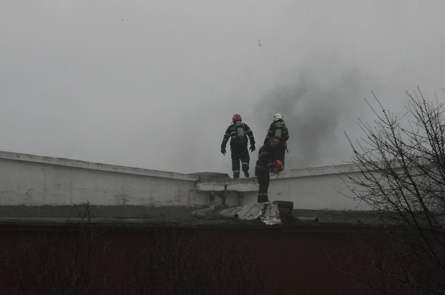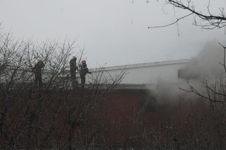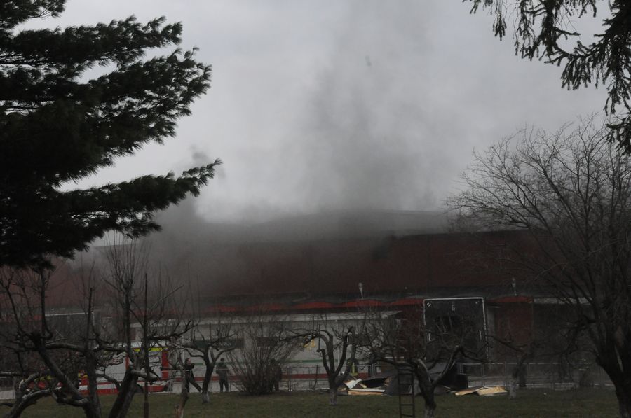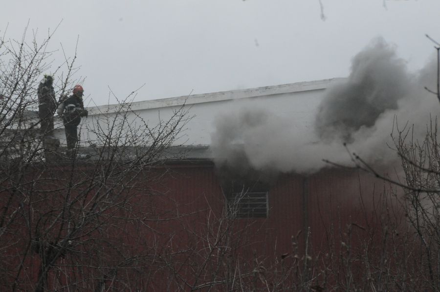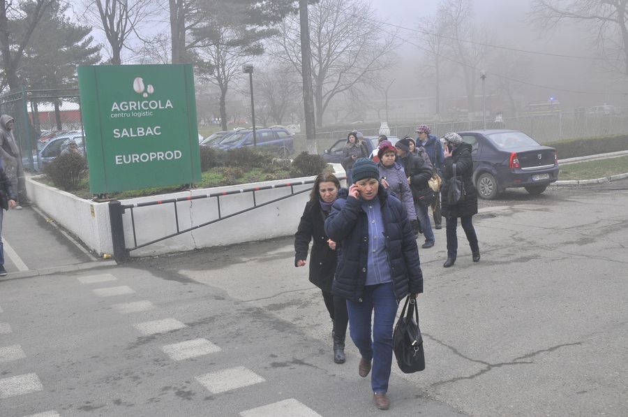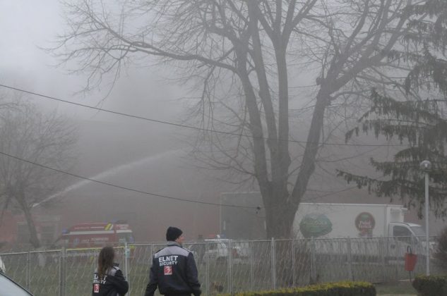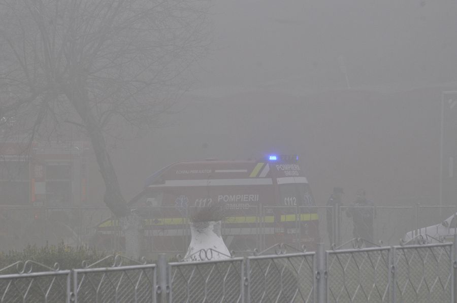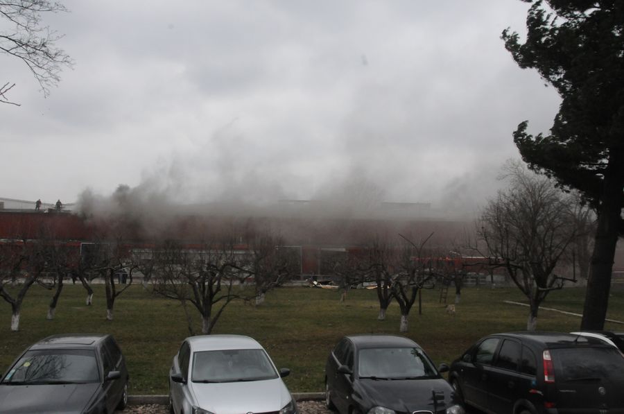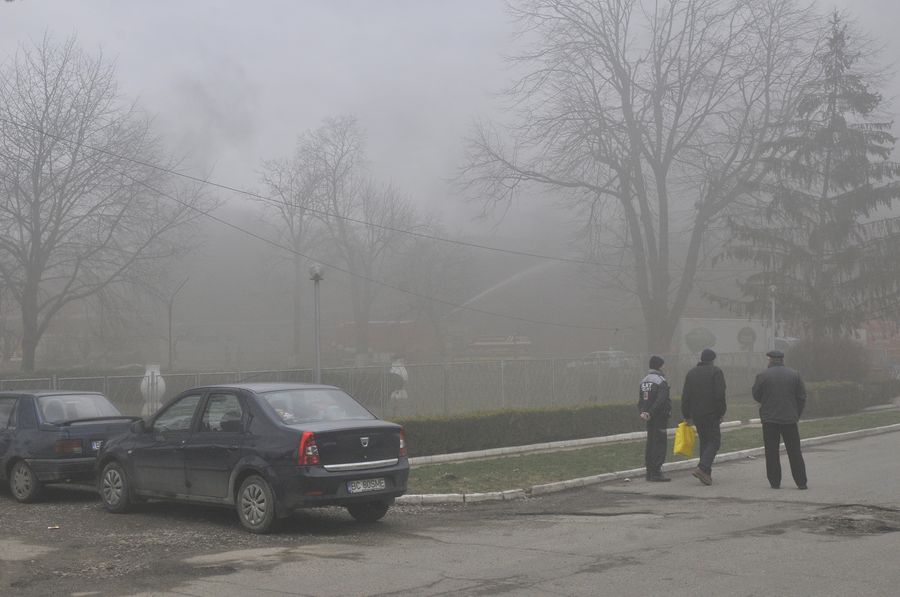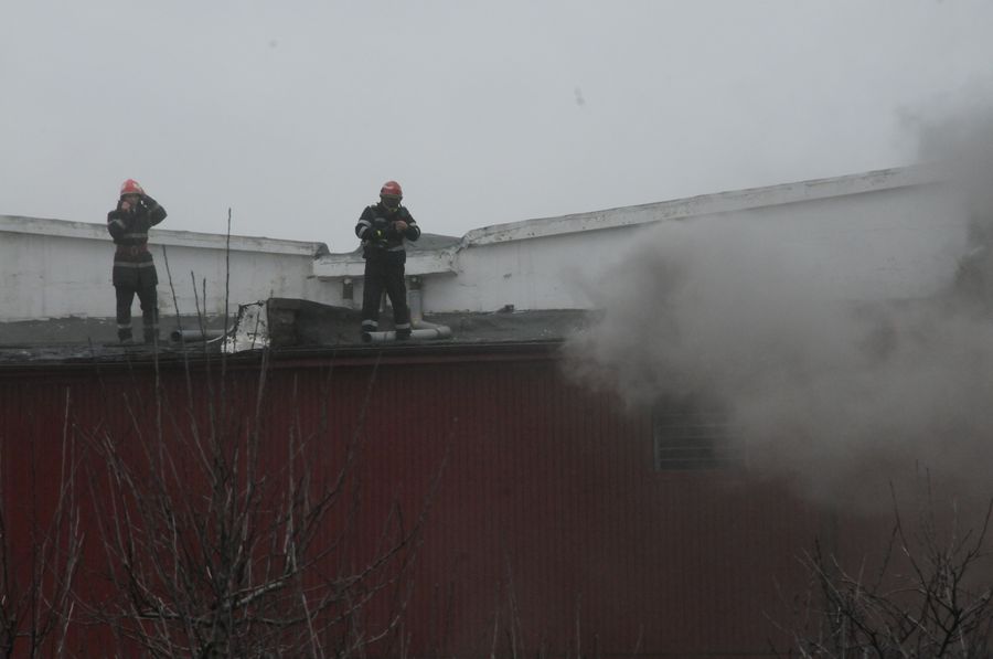 Intervenţia este dificilă din cauza degajărilor masive de fum, vizibilitatea fiind zero, dar şi a compartimentării halei, în multe spaţii.