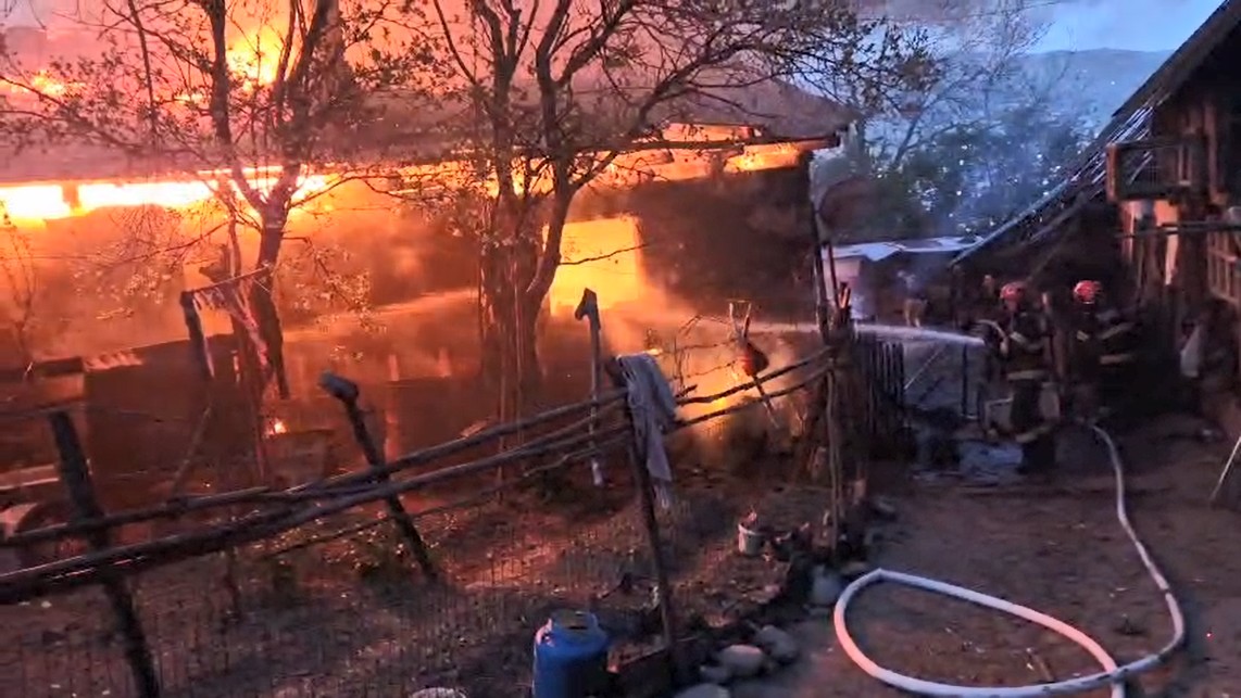 La sosirea echipajelor de intervenție, incendiul se manifesta la o casă de locuit, pe o suprafață de aproximativ 100 de metri pătrați.