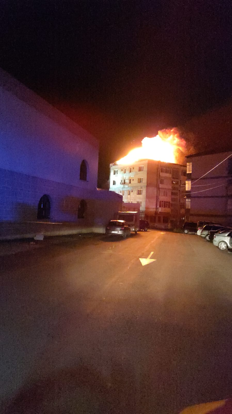 Un incendiu a izbucnit, în noaptea de marţi spre miercuri, la o terasă-grill din municipiul Oneşti, iar flăcările s-au extins la acoperişul unui bloc din imediata vecinătate, fiind evacuate 58 de persoane din imobil.