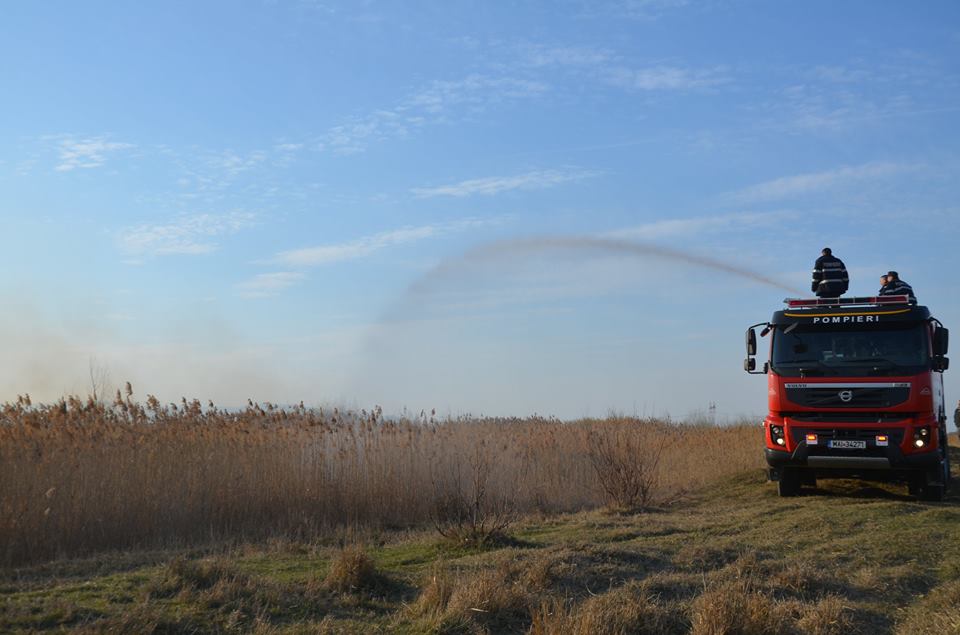 Pe 17 martie ISU Bacau a intervenit pentru a stinge un incendiu de vegetatie in coada lacului Racaciuni, in zona comunei Gioseni.