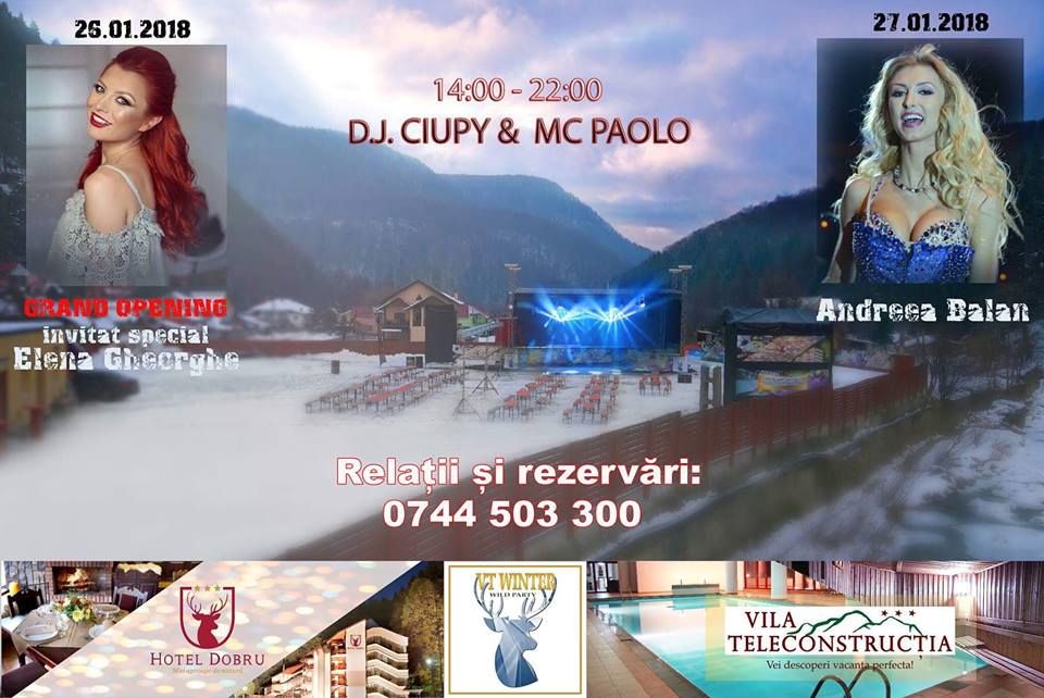 De vineri, 26 ianuarie, de la ora 14.00, ne-a informat Mircea Șova, administratorul Vilei Teleconstrucția, până duminică, 28 ianuarie, turiștii și, evident, slănicenii vor petrece împreună cu două invitate de marcă, solistele Elena Gheorghe și Andreea Bălan, dar și cu DJ Ciupy & MC Paolo, la VT Winter Wild Party. „Evenimentele – a precizat Mircea Șova – vor avea loc pe un teren al Vilei Teleconstrucția, lângă Pârtia de schi Nemira”.