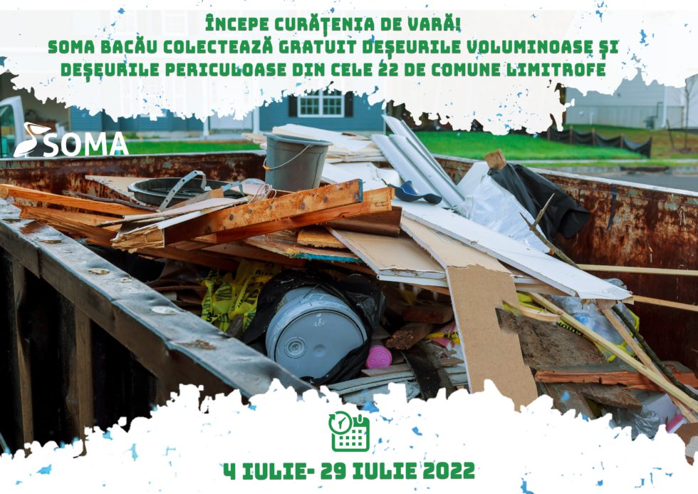 Începe curățenia de vară! Soma Bacău colectează gratuit deșeurile voluminoase și deșeurile periculoase din cele 22 de comune limitrofe