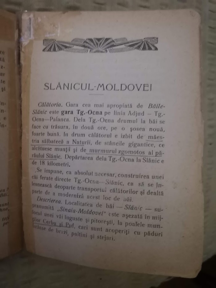 16-22 iulie 2015; ,,Regenerarea în vacanță” – editorial, în ziarul ,,Curierul Slănicului Moldova”, nr. 2, 1 iulie 1909; Biblioteca Centrală Universitară ,,Mihai Eminescu” din Iași; Friedrich, Grünfeld, ,,Călăuza locurilor de băi şi de odihnă din România”, Institutul de Arte Grafice C. Sfetea, București, 1912.