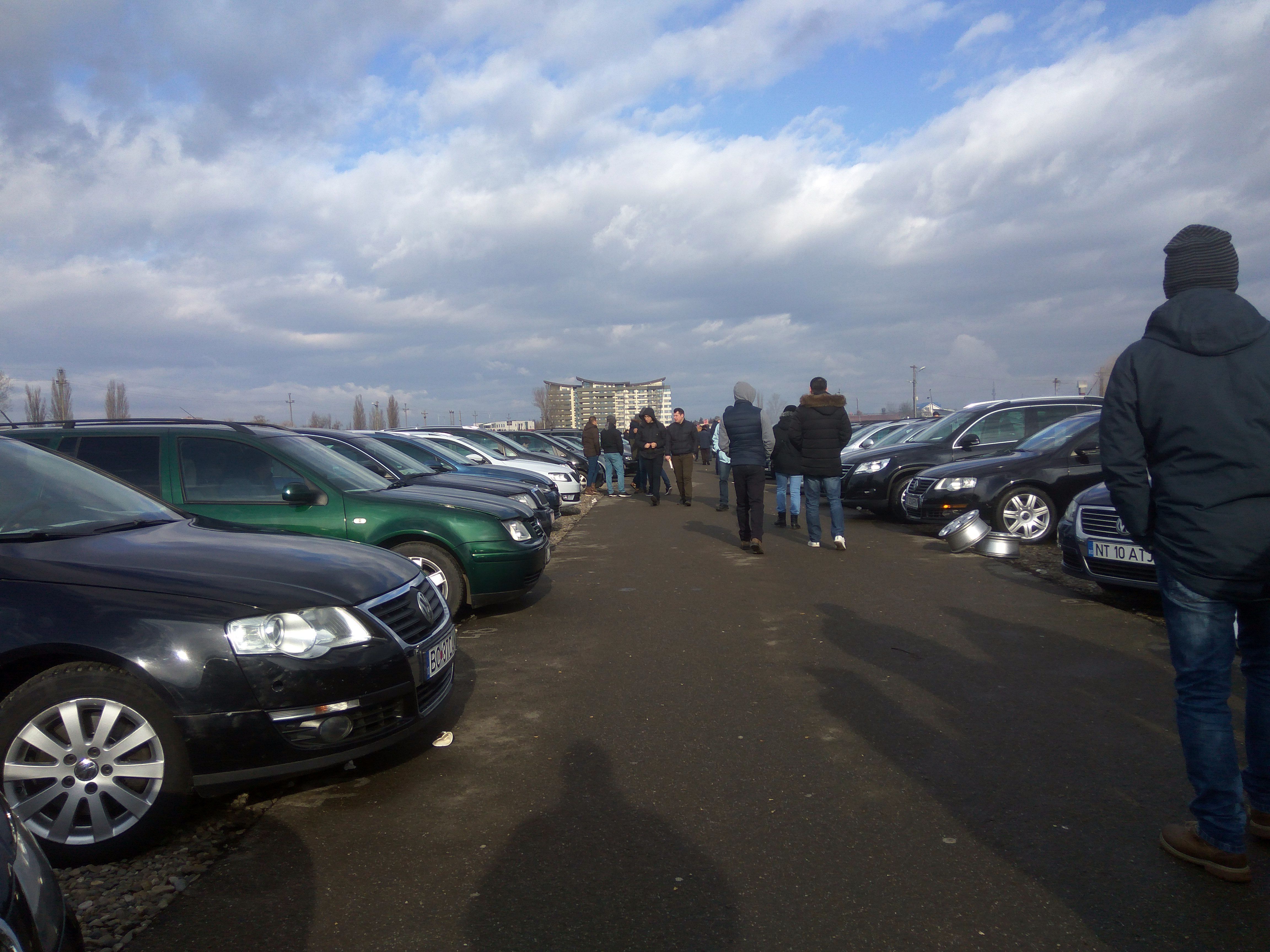 Din când în când, un proprietar rupea linia, zorindu-se, cel mai probabil, să facă un test cu posibilul mușteriu. Pe aleea Opel, ca să zic așa, unde cele mai multe mașini parcate purtau logo-ul producătorului german, niște samsari veniți din județul vecin, tocmai de la Târgu Neamț, încercau să scape de mașinile lor suspect de curate și de ieftine. „E din 2005, pe motorină. O dau pentru că mi-am luat alta, mai mare, cu mai multe locuri, o Zafira. Curios e că aproape toată lumea a întrebat de când e adusă în țară. Dar, niciunul nu s-a arătat cu adevărat interesat de mașină. Unii, cum te uiți la ei, cum întorc privirea în altă parte”, spune omul. E venit cu încă doi „colegi”, zice el, la soacră, în Bacău, și, cu ocazia asta, încearcă să scape și de mașină. Nu am timp să-l cred, e placa pe care o pun mulți comercianți de mașini rulate.