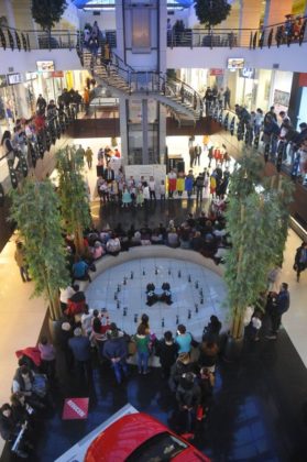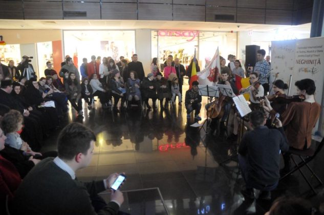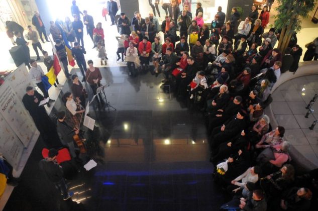 Goana după cadoul perfect de 8 Martie prin magazinele ce compun galeriile comerciale Arena Mall a beneficiat pentru un timp de suportul sonor oferit membrii Parohiei „Sfinţii Trei Ierarhi” păstoriţi de preoţii Aurel Cîrlan, Marian Gliga şi Flavius Balaban, şi invitaţii lor.