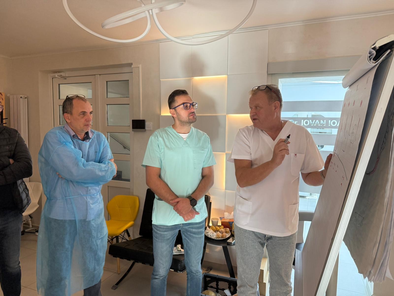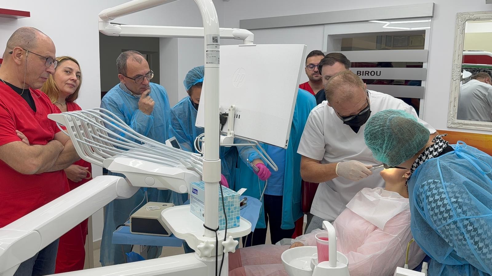 Programul a fost structurat în patru zile de formare intensivă, îmbinând teoria cu practica clinică. Luni și marți, participanții au asistat la intervenții reale – trei pacienți în prima zi și patru în a doua – demonstrând aplicarea directă a tehnicilor moderne de implantologie cu încărcare imediată.