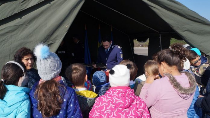 Totodată, au fost distribuite pliante referitoare la competențele Poliției Române, condiţiile de recrutare în unităţile de învăţământ ale Poliţiei Române și materiale cu recomandări privind siguranța personală și a bunurilor.