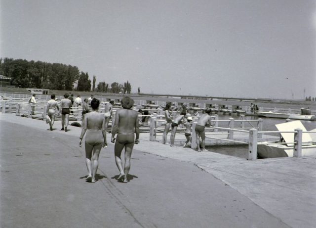„Nu locuim departe. Veneam cu părinții… O amintire? Da! Multe. Numai puțin… Georgeee! Nu te duce acolo! Da! Nu știu dacă era duminică sau ziua unchiului, îl chema Ilie, dar era cam în perioada asta. Nu mai erau locuri la terasă. De obicei stăteam pe pături. Făceam plajă mai la umbră. Erau bărci pe lac. Și ce plajă! Imensă mi se părea mie. Cu nisip! Ca la mare. Și apă curată. Toți făceau baie în lac și veneau apoi la dușuri. Erau multe dușuri, cu apă încălzită la la soare, într-un bazin suspendat. Mă uitam la verișorii mei cum se dădeau pe tobogan și țipau când ajungeau în apă. Era unul înalt, făcut din beton, cam pe acolo, nu mai recunosc locul acum. Unde e clădirea aceea din lemn. Bar sau ce va fi. Arată cam dezolant acum, fără mese, pe terasă. Parcă e prea mult lemn și fier… De ce țin bine minte? Seara s-a dus vestea că s-a înecat un tânăr, elev în ultimul an de liceu, după ce a sărit din barcă. Apa era adâncă. Mie mi-a fost teamă de apă. Mama a plâns. Îi știa familia.”