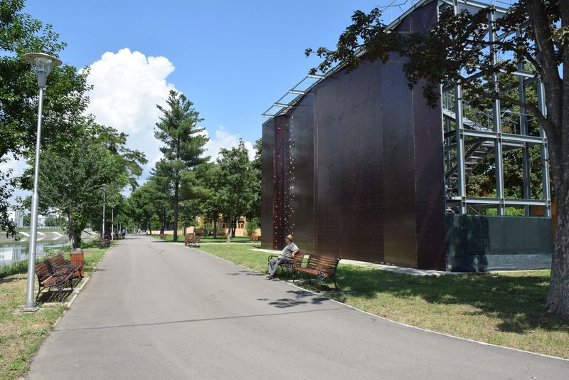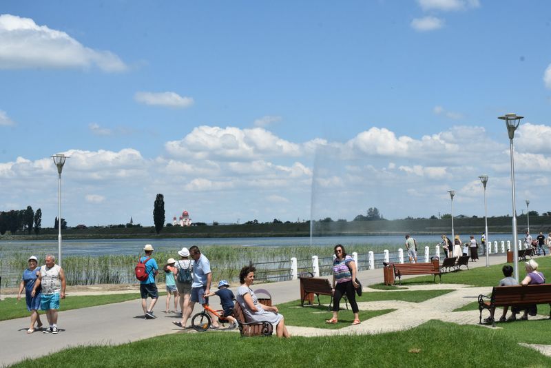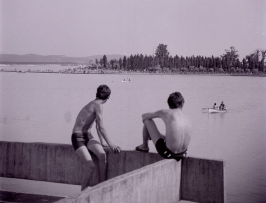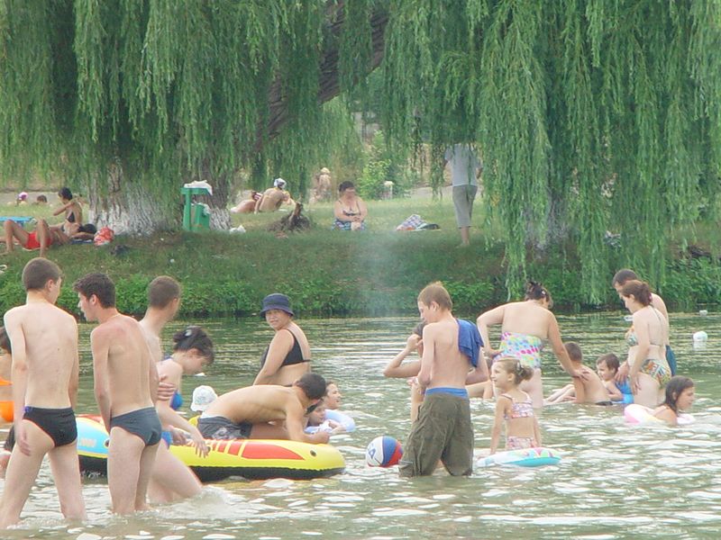 „Nu locuim departe. Veneam cu părinții… O amintire? Da! Multe. Numai puțin… Georgeee! Nu te duce acolo! Da! Nu știu dacă era duminică sau ziua unchiului, îl chema Ilie, dar era cam în perioada asta. Nu mai erau locuri la terasă. De obicei stăteam pe pături. Făceam plajă mai la umbră. Erau bărci pe lac. Și ce plajă! Imensă mi se părea mie. Cu nisip! Ca la mare. Și apă curată. Toți făceau baie în lac și veneau apoi la dușuri. Erau multe dușuri, cu apă încălzită la la soare, într-un bazin suspendat. Mă uitam la verișorii mei cum se dădeau pe tobogan și țipau când ajungeau în apă. Era unul înalt, făcut din beton, cam pe acolo, nu mai recunosc locul acum. Unde e clădirea aceea din lemn. Bar sau ce va fi. Arată cam dezolant acum, fără mese, pe terasă. Parcă e prea mult lemn și fier… De ce țin bine minte? Seara s-a dus vestea că s-a înecat un tânăr, elev în ultimul an de liceu, după ce a sărit din barcă. Apa era adâncă. Mie mi-a fost teamă de apă. Mama a plâns. Îi știa familia.”