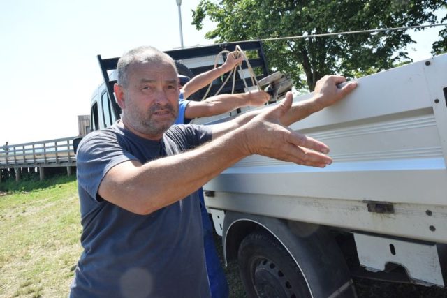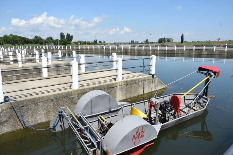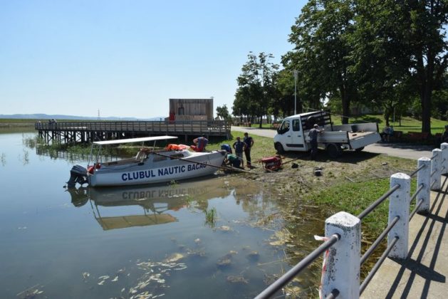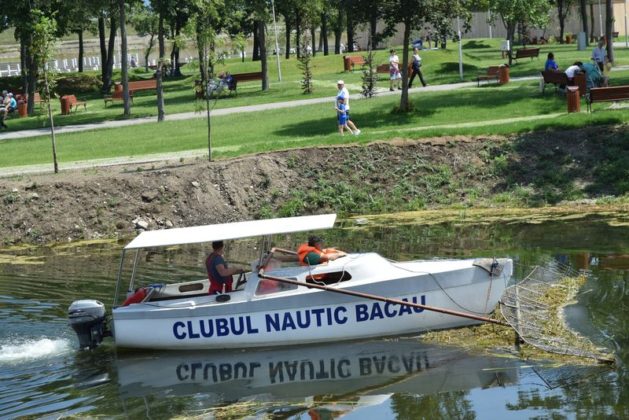 Gelu Ținori, președintele Clubului Nautic din Bacău, pregătea, împreună cu mai mulți colegi, o ambarcațiune adaptată, pentru tăierea vegetației din apă: o combinație între velier și șalupă.