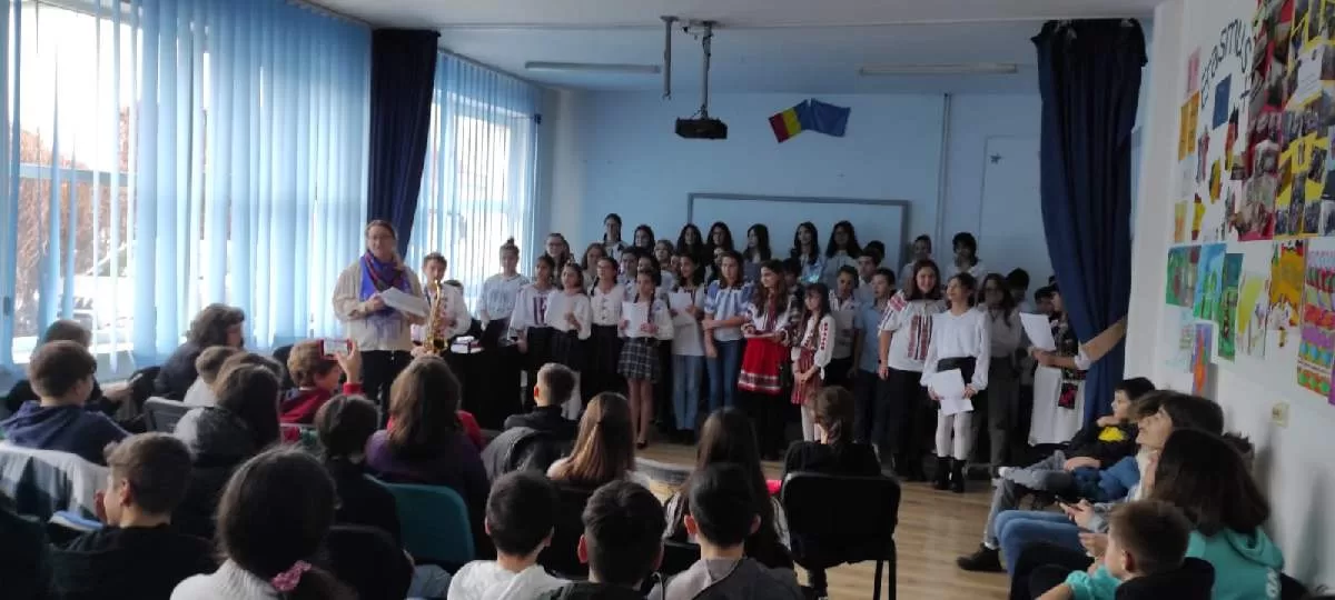 Marți, 29.11., pe holurile Școlii Gimnaziale ”Alexandru cel Bun” Bacău s-au auzit glasuri cristaline de copii intonând cântecele Unirii. Corului școlii noastre i-a fost dor să se reîntâlnească, mai ales că ocazia a fost una specială: sărbătorirea zilei de 1 Decembrie. Copiii cu talent actoricesc au recitat poezii care au strors lacrimi din ochii colegilor spectatori. Octavian Dascălu, elev al clasei a VI-a A a mers la inima tuturor cântând și acompaniind coriștii la saxofon. Elevii noștri talentați fac parte din clasele a V-a A, a V-a B, a VI-a A, a VI-a B, a VII-a A, a VII-a B, îndrumați de diriginții Nicoleta Mărian, Mădălina Alexoae, Claudia Burghelea, Angela Leibu, Andra Ciucu, Violeta Gheorghian. Corul este dirijat de doamna profesoară Ingrid Zaharia. Alături de copii și diriginți au stat, ca la toate activitățile școlii, directoarele Camelia Stamate și Alina Ababei.