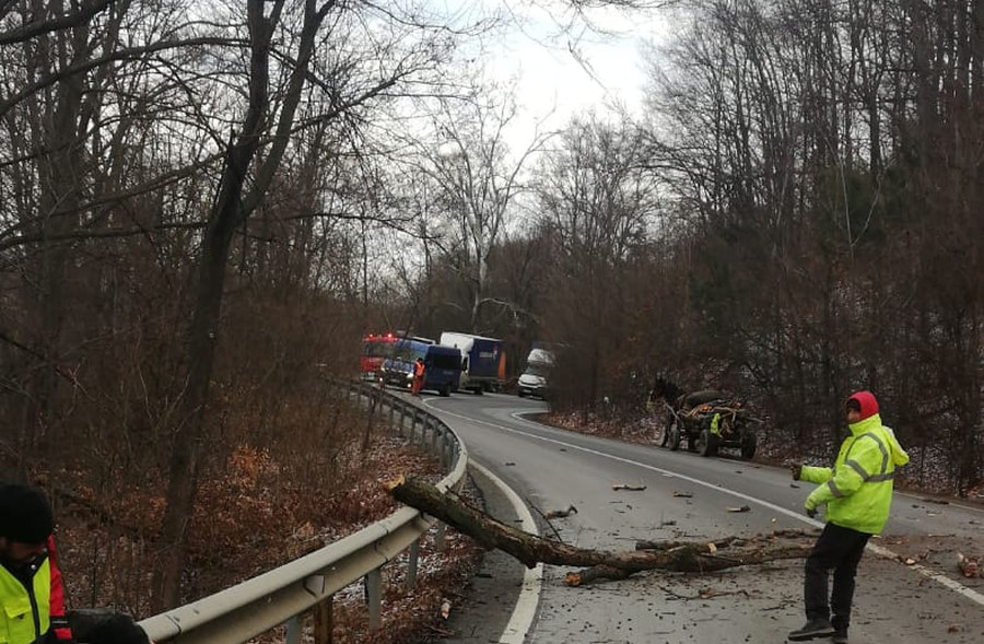 Pompierii băcăuani au intervenit, în această dimineață, pe Dealul Măgura, pentru a degaja un copac în pericol să se prăbușeasca peste șosea.