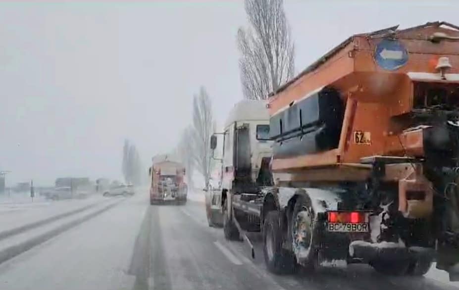 Pentru a face față condițiilor meteorologice dificile, echipele SDN Bacău au distribuit cu eficiență 362 de tone de material antiderapant pe următoarele drumuri: