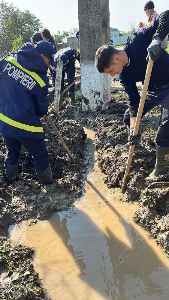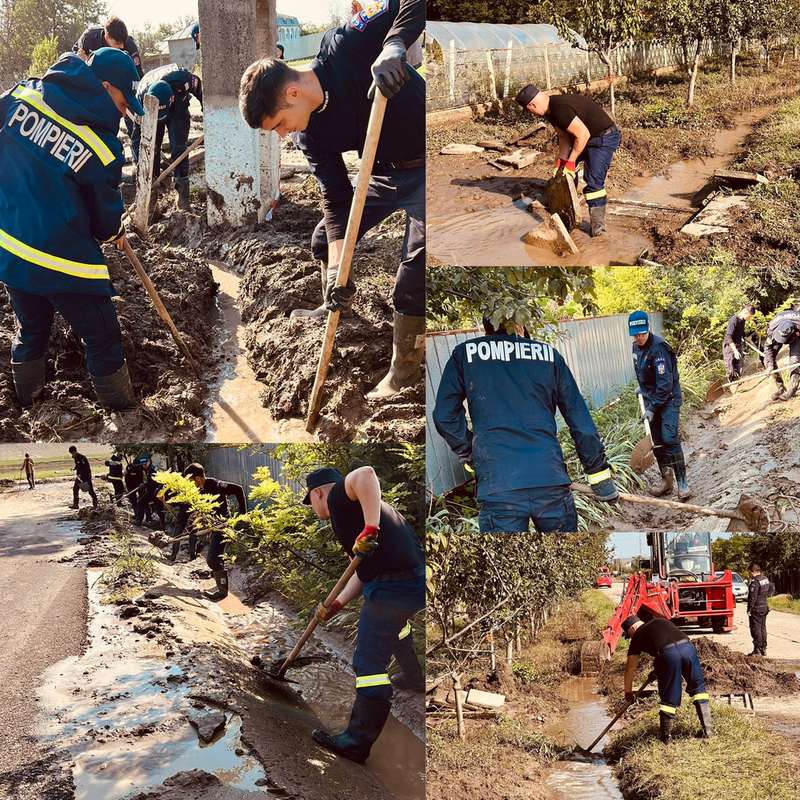 • Curățarea gospodăriilor inundate – Sute de locuințe au fost curățate de apă și mâl, iar pompierii folosesc motopompe pentru a evacua apa acumulată în subsoluri, curți și locuințe. Această acțiune esențială permite cetățenilor să își recapete locuințele și să își refacă viața afectată de dezastru.
