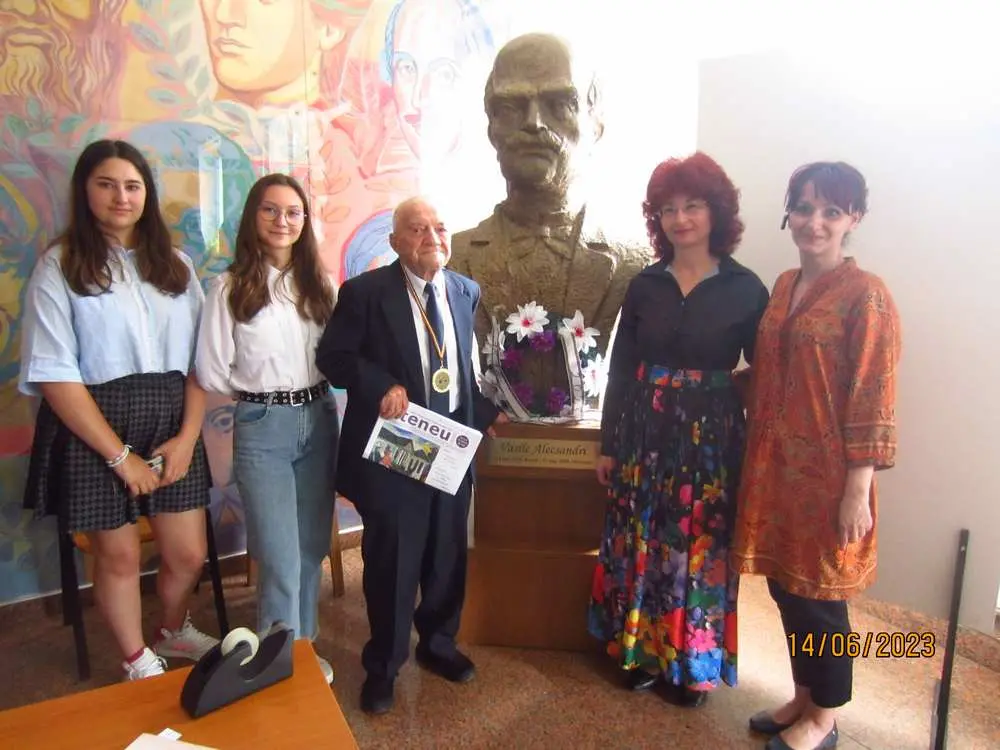 În chiar ziua lui Alecsandri, 14 iunie, la bustul din holul Facultăţii de Litere, un dublu eveniment: decanul, conf. univ. dr. Brînduşa-Mariana Amălăncei, vicepreşedinta Societăţii Cultural-Ştiinţifice „Vasile Alecsandri” Bacău, i-a acordat lui Gh. Crihan (95 de ani) medalia „Vasile Alecsandri – George Sion”, iar acesta, împreună cu Rita-Diana Iojă, elevă a Colegiului Naţional Pedagogic Bacău (premiată la Concursul Naţional de Creaţie Literară „Alecsandriana”, ediţia 2023), a depus o coroană cu trei grupuri de cifre: 1818 – 2023 – 205.