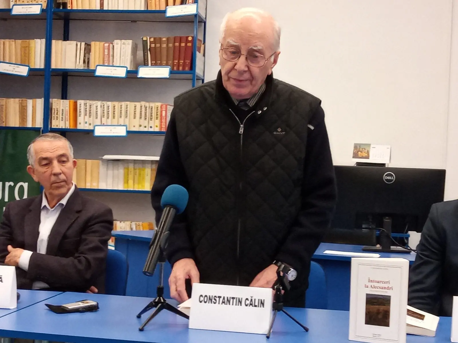 Moderatorul Adrian Jicu, cu dezinvoltura-i cunoscută ne-a introdus în atmosfera specifică unui asemenea eveniment, lansarea volumului „Întoarceri la Alecsandri”, semnat de Constantin Călin: „Întoarceri la Alecsandri”, un titlu care are multe deschideri, deoarece acest plural, aceste «întoarceri»” marchează nu numai întoarcerile profesorul Constantin Călin la unul dintre marii scriitori care înseamnă mult pentru Bacău, pentru renumele Bacăului, ci și pentru tot ce a însemnat pentru literatrura secolului XIX, ca creator de limbă, dar și ca om politic, diplomat, patriot. Și mai trebuie să precizăm că acest eveniment mai înseamnă și reîntoarcerea profesorului Călin în acest spațiu academic, mai înseamnă și faptul că avem ocazia să spunem, să repetăm cine este și ce înseamnă, ce a făcut profesorul Călin pentru Bacău, pentru literatura și cultura băcăuană”, a spus Adrian Jicu. „Profesorul Constantin Călin, a spus și prof. Ioan Dănilă, ne-a bucurat în ultimii ani cu o serie de scrieri care vor rămâne peste timpuri mărturie a efortului unui om care toată viața a cercetat în biblioteci și arhive, în cărți, reviste și ziare mărturii despre Bacău, dar mai ales despre marele poet care a fost Bacovia. Însă bucuria este și mai mare când vedem că și Alecsandri a stat în atenția istoricului, criticului Constantin Călin, mărturii adunate nu de pe internet, ci direct de la sursă, ceea ce dă veridicitate și garanția adevărului, care rămân, se adaugă patrimoniului nostru cultural.”