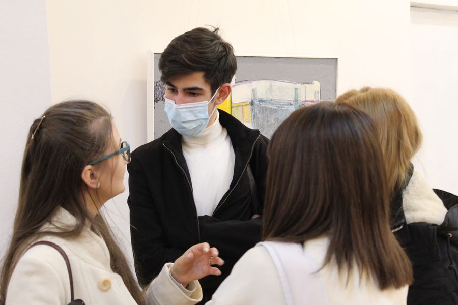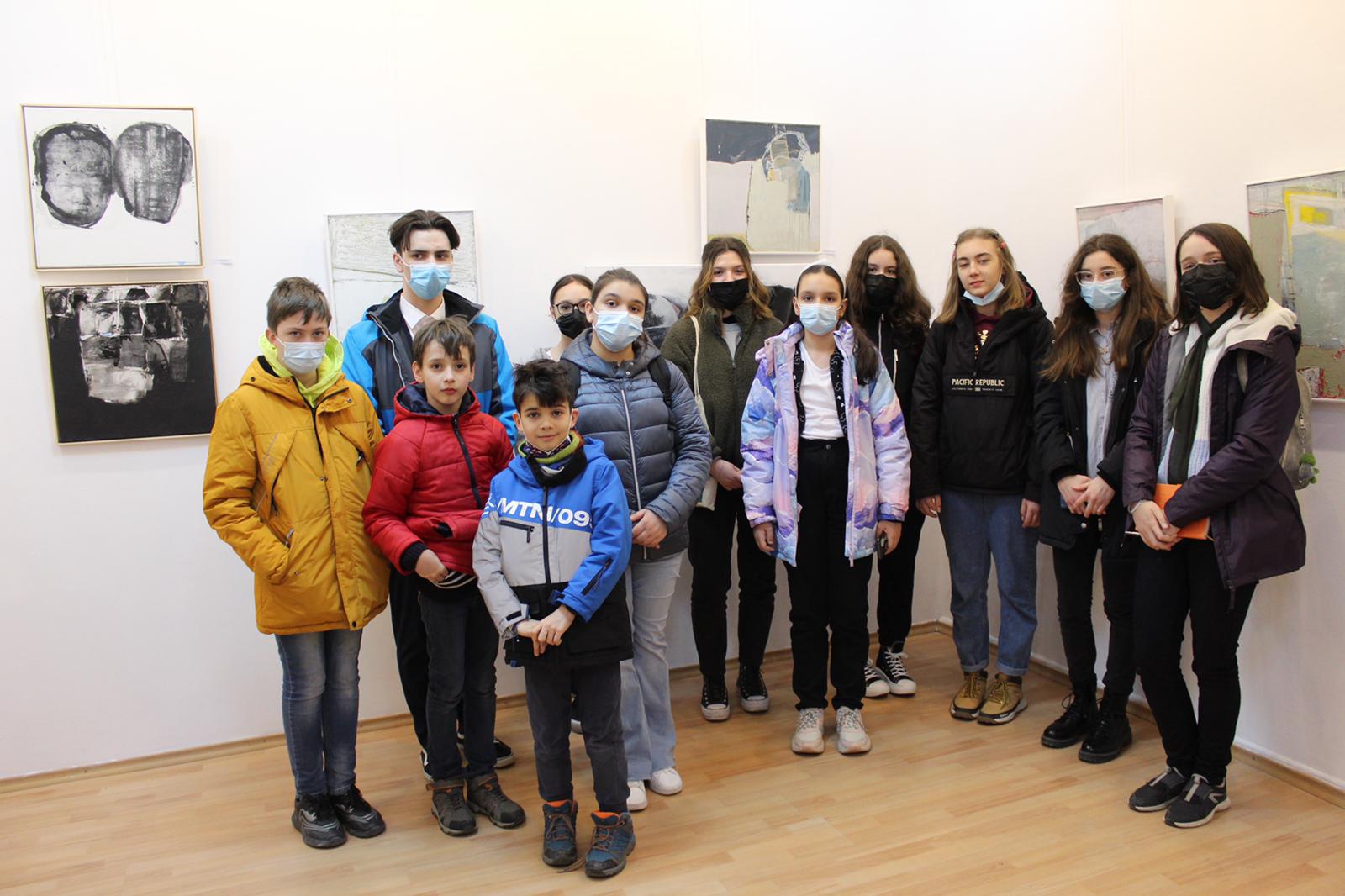 Am participat, în această zi, alături de colegi de la Cercul de jurnalism al Palatului Copiilor Bacău, și de profesoara noastră, doamna Laura Huiban, la vernisajul „Între timpi”, o expoziție de artă contemporană, o manifestare a iubirii față de pictură și de viață, semnată de artistele Luminița Radu și Bianca Rotaru, ambele cu nenumărate premii și lucrări, membre ale Uniunii Artiștilor Plastici din România (UAPR) – Filiala Bacău și profesoare ale Colegiului Național de Artă ”George Apostu” Bacău. Evenimentul a fost și mai special pentru artista Bianca Rotaru, de vreme ce, după spusele pictoriței Carmen Poenaru, președinta UAP Bacău: „Bianca s-a născut cu dragoste, într-o zi de dragoste.”, astfel că și-a aniversat ziua de naștere la vernisaj.
