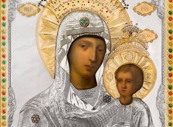 Iconarul a început lucrarea la Mănăstirea Bucium din Iași, care era pe atunci metoc al Schitului Prodromu, iar în câtva timp a terminat de pictat veşmintele şi celelalte părți ale icoanei, lăsând ca Sfintele Feţe, să le picteze la sfârșit, după cum este tehnica picturii tradiționale de icoane. După ce a terminat de zugrăvit cum s-a priceput mai bine veșmintele şi fondul icoanei, a început a lucra la Sfintele Feţe silindu-se cu toată priceperea, însă în mod inexplicabil sfintele feţe ale Fecioarei Maria şi Pruncului Iisus din brațele ei nu puteau fi zugrăvite, iar icoana a rămas nedesăvârșită.