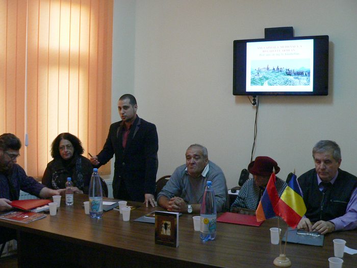 Profesorul de istorie Mihai Andone a vorbit despre istoria milenara a poporului armean, greutatile si, mai ales prigoana, insotita de genociduri repetate, la care au fost supusi armenii, ceea a condus la moartea a milioane de armeni, dar si a migratiei lor in toata lumea, multi dintre ei stabilindu-se pe teritoriul României.