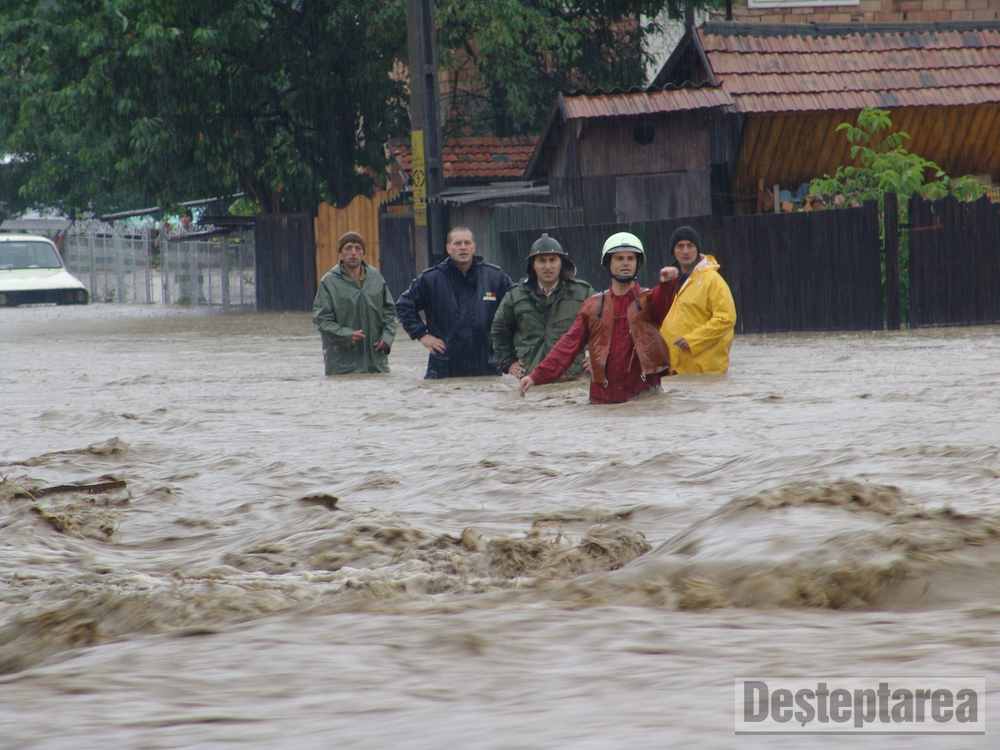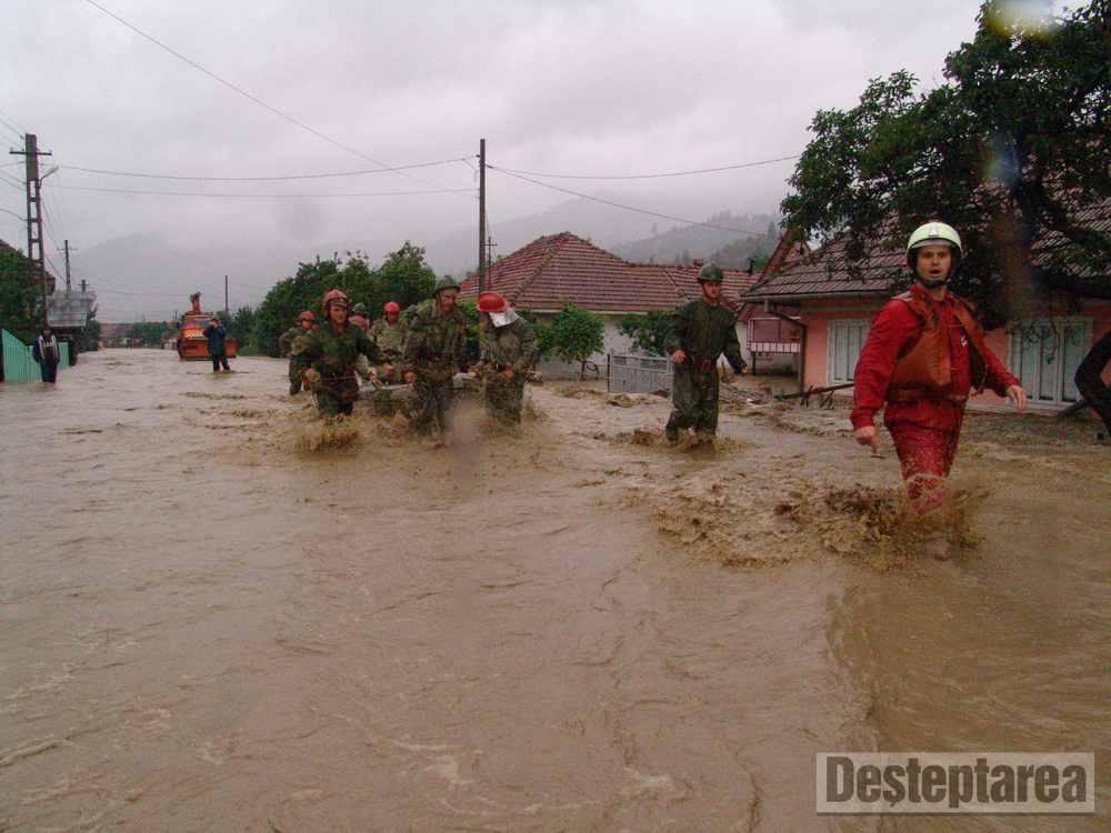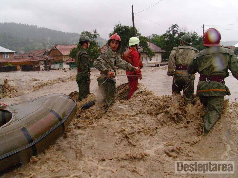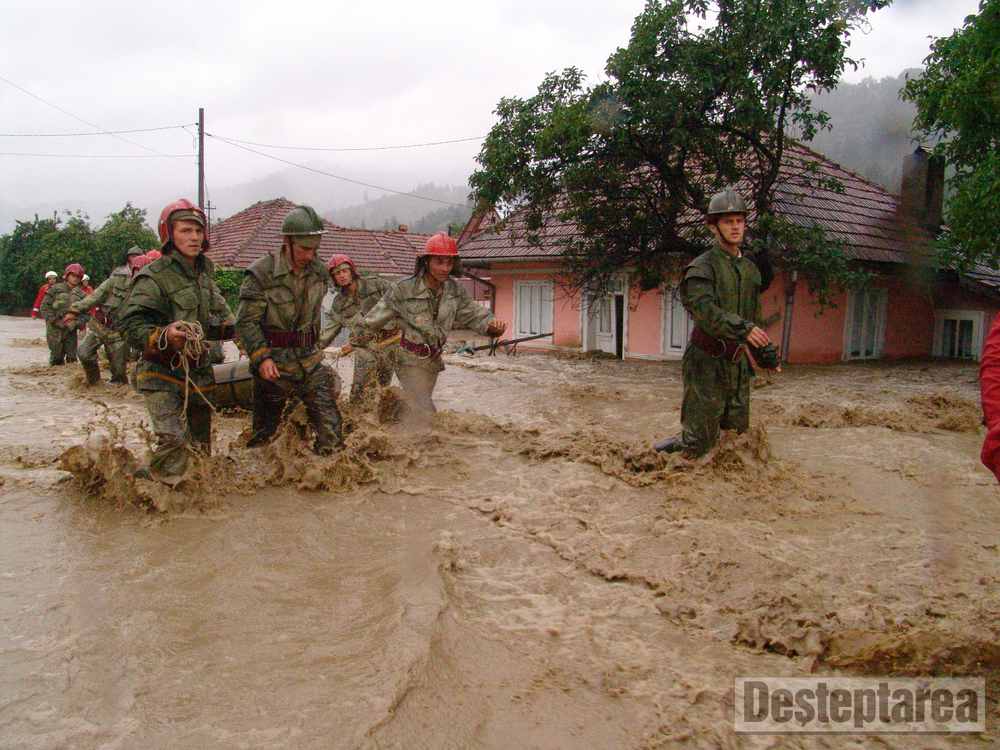 „Echipele de jandarmi continuă să «măture» zona, încercând să salveze ce se mai poate salva. Mai sunt și alți oameni prinși de ape. La Dofteana, situația e la fel de disperată. Elicopterul survolează regiunea. Acolo jos, jos de tot, se mișcă ceva. Sunt șase copii, care, aflați în mijlocul câmpului inundat, strigă după ajutor. Au plecat de dimineață cu animalele la păscut și au fost prinși de viitură. O imagine apocaliptică. Elicopterul nu poate face nimic; nu se poate interveni decât de pe sol. Echipajul terestru intră în acțiune. Plutonierul major Nicușor Munteanu, șeful de post al Jandarmeriei Dărmănești, nu stă pe gânduri: se aruncă în mijlocul apelor.