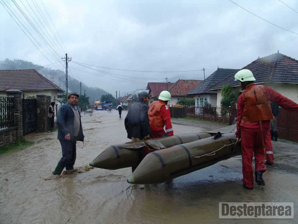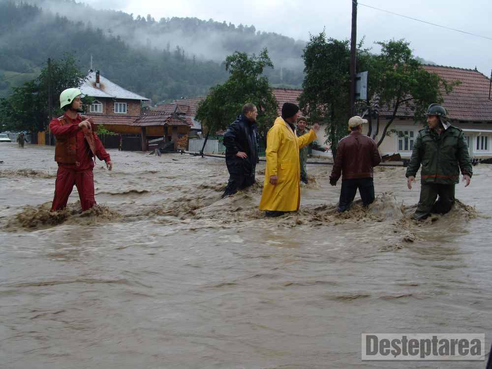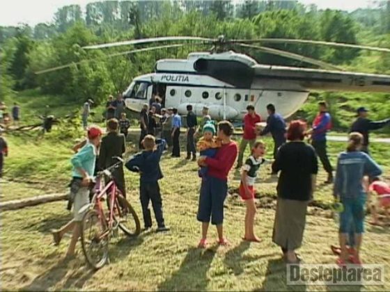 „Potopul s-a abătut peste tot județul. În câteva ore, întreaga vale a Trotușului a fost înghițită de ape. Urgia a coborât pe pământ. Zeci de case sunt inundate instantaneu. Imagini de coșmar. Plouă încontinuu, iar norii plumburii se dezlănțuie din ce în ce mai tare. Dărmăneștiul e și el sub ape. Doi oameni sunt surprinși de viitură în timp ce încărcau prundiș într-o basculantă. Mâinile bat apa. Se ridică spre cer, odată cu strigătele de ajutor. Disperare. Salvarea ia forma cabinei mașinii înghițită parțial de ape. Cei doi sunt departe de a fi salvați. Apa vine, vine mereu. Nu reușește însă să le acopere țipetele disperate. Sunt auziți de pe mal de câțiva săteni. Cum să-i poți salva? Debitul râului crește. La fel crește și panica. Este ora 12.00. Fiecare clipă e una de coșmar, iar secundele trec greu. Se transformă în minute. Minutele în ore. Salvarea nu vine de pe pământ. Vine din ceruri. Elicopterul Unității Speciale de Aviație își face apariția în jur de ora 18.00. Aparține Ministerului Administrației și Internelor și sosește tocmai de la București. Echipajul este coordonat de generalul Nicolae Rugină, comandantul Centrului Teritorial de Jandarmi. Furia apelor este greu de învins; elicopterul face o groază de manevre. În zadar. Încă o încercare. Și încă una. În sfârșit! Un membru al echipei de intervenție reușește să ajungă la cei doi sinistrați, care sunt legați cu o frânghie și smulși din mijlocul prăpădului. Tocmai la timp! Apele învolburate înghit mașina. Elicopterul aterizează pe stadionul din Comănești, iar cei doi bărbați sunt preluați de Salvare.”
