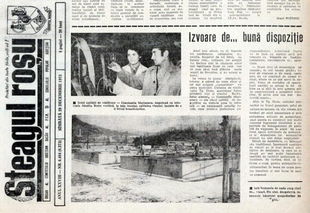 Șeful unității, Constantin Marinescu, era prezentat ca un expert în domeniu, al cărui gust rafinat nu ridica semne de întrebare. În articol se sublinia că, datorită prelucrării cu „bună dispoziție răspunzătoare”, vinurile locale puteau concura cu cele tradiționale, recunoscute pe plan național.