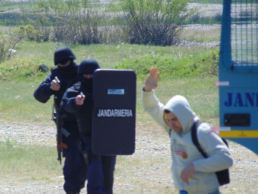 Alături de colegii lor de la Gruparea de Jandarmi Mobilă Bacău, de pompierii băcăuani şi de cei de la Serviciul Român de Informaţii, aceştia au desfăşurat, în Poligonul Gherăieşti, un exerciţiu de verificare a capacităţii de reacţie şi intervenţie a forţelor de ordine la incidente grave, soldate cu morţi şi răniţi.