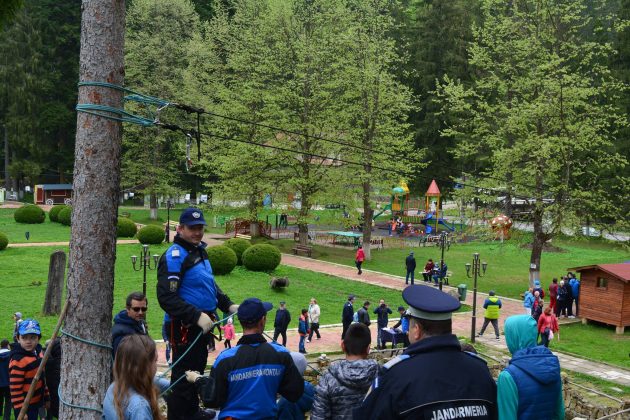 Au fost amenajate standuri expoziţionale cu materialele şi mijloacele de intervenţie din dotarea jandarmilor, autovehiculele folosite în misiunile zilnice și au fost prezentate exercitii de dresaj cu câinii de serviciu. De asemenea, micii turisti din stațiune au avut posibilitatea de a folosi tiroliana jandarmilor montani.