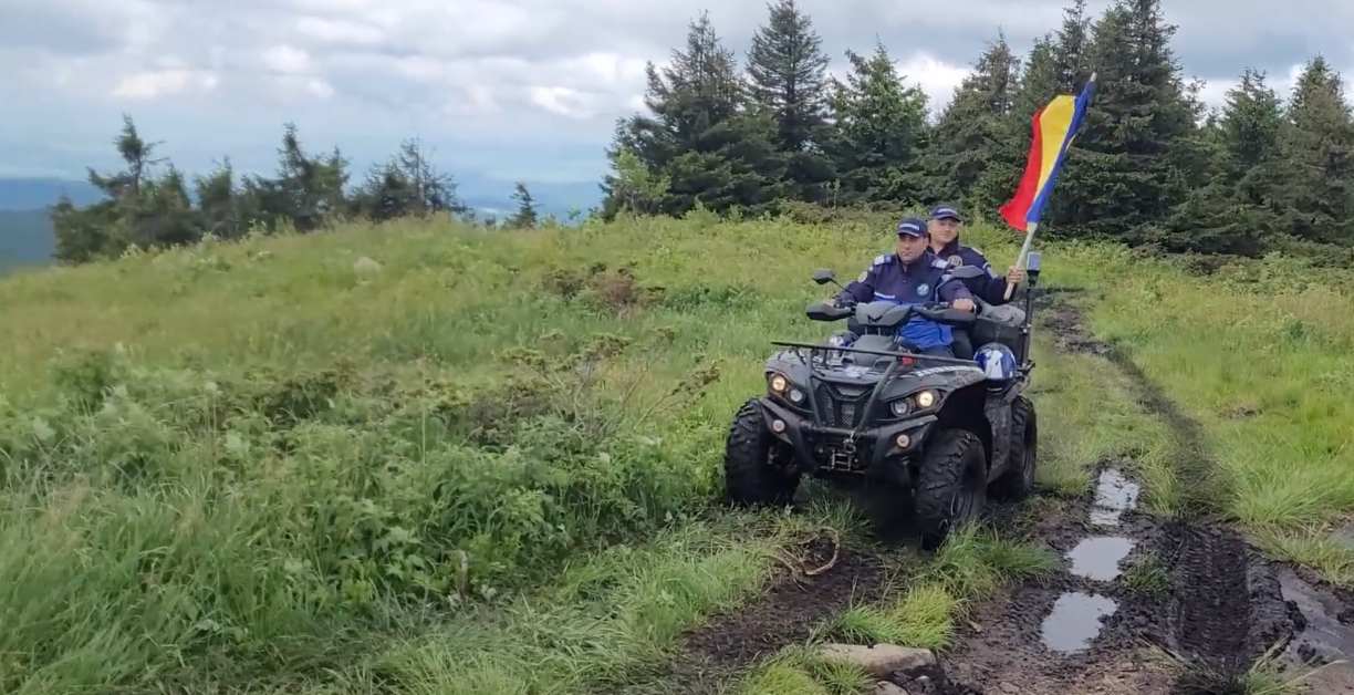 Jandarmii au reușit să ajungă la Vârful Șandru, situat la înălțimea de 1640 de metri. Aici, în mijlocul naturii și în fața privirilor mărețe ale munților, drapelul național a fost arborat într-un gest simbolic al respectului și dragostei față de țară.