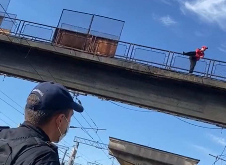 Bărbatul era într-o stare vădită de agitație psihică şi ameninţa că dacă se apropie vreun jandarm se aruncă în gol. In această situație, aceștia au decis ca un jandarm îmbrăcat în haine civile să se apropie de el, în speranța că va putea dialoga cu acesta.