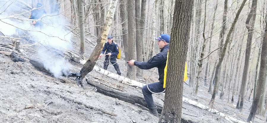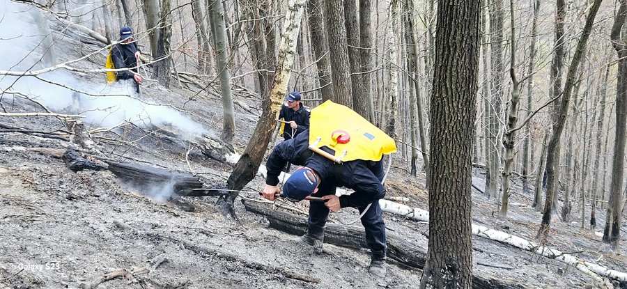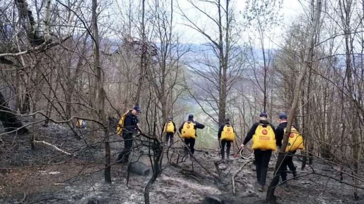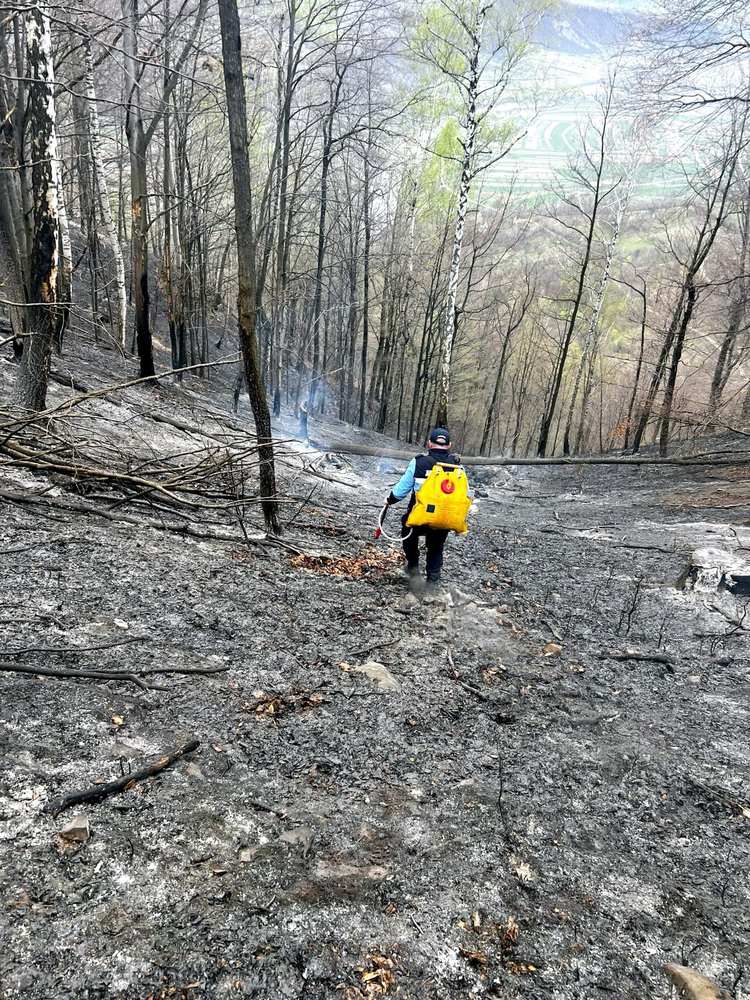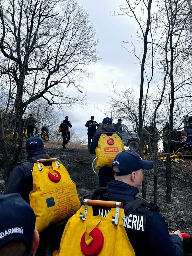 Jandarmii montani și cei din cadrul Detașamentului 3 Jandarmi Onești intervin în sprijinul pompierilor, pentru stingerea incendiului produs la fondul forestier Târgu Ocna.