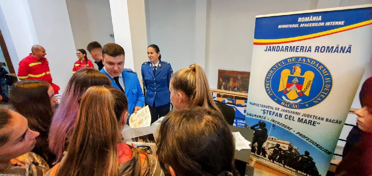 Jandarmii s-au adresat tinerilor care au promovat examenul de bacalaureat și care s-au arătat interesați de o carieră în Jandarmeria Română. Specialiști în domeniul resurselor umane le-au oferit informațiile necesare cu privire la întocmirea dosarului de candidat și la etapele pe care le vor avea de parcurs până la examenul propriu-zis, dar și despre echipa jandarmilor băcăuani.