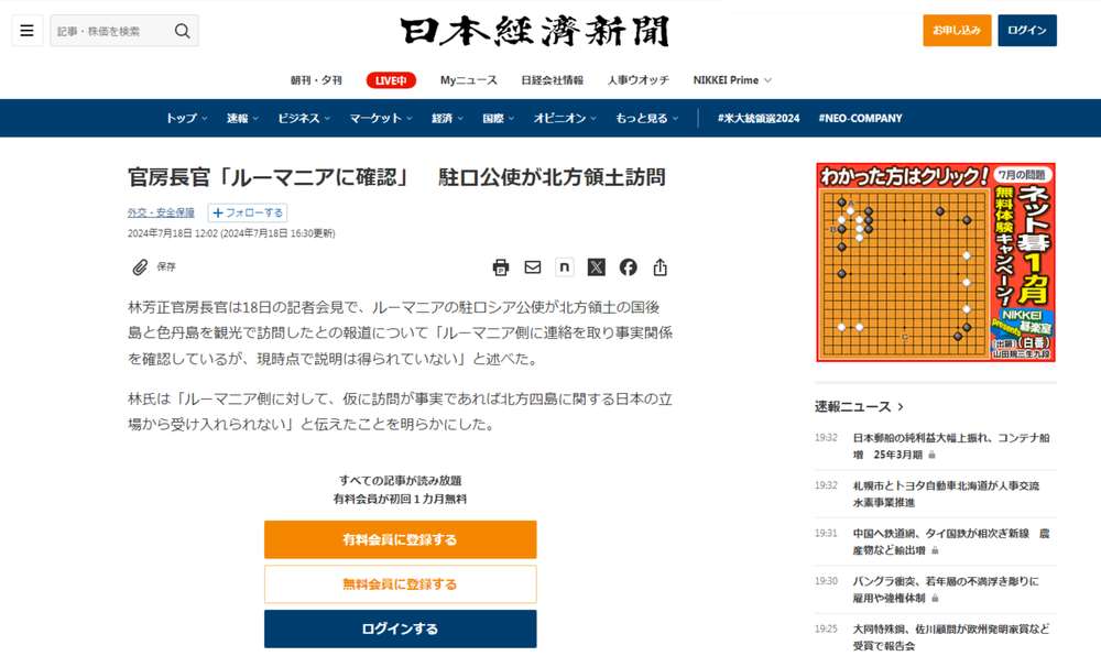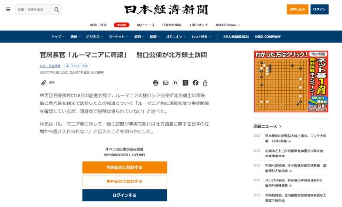 El a subliniat că Japonia consideră această vizită drept inacceptabilă, având în vedere poziția sa fermă privind cele patru insule din nord. Hayashi a adăugat că, în cazul în care vizita ar fi confirmată, guvernul japonez va reacționa conform poziției oficiale a Japoniei în această chestiune.