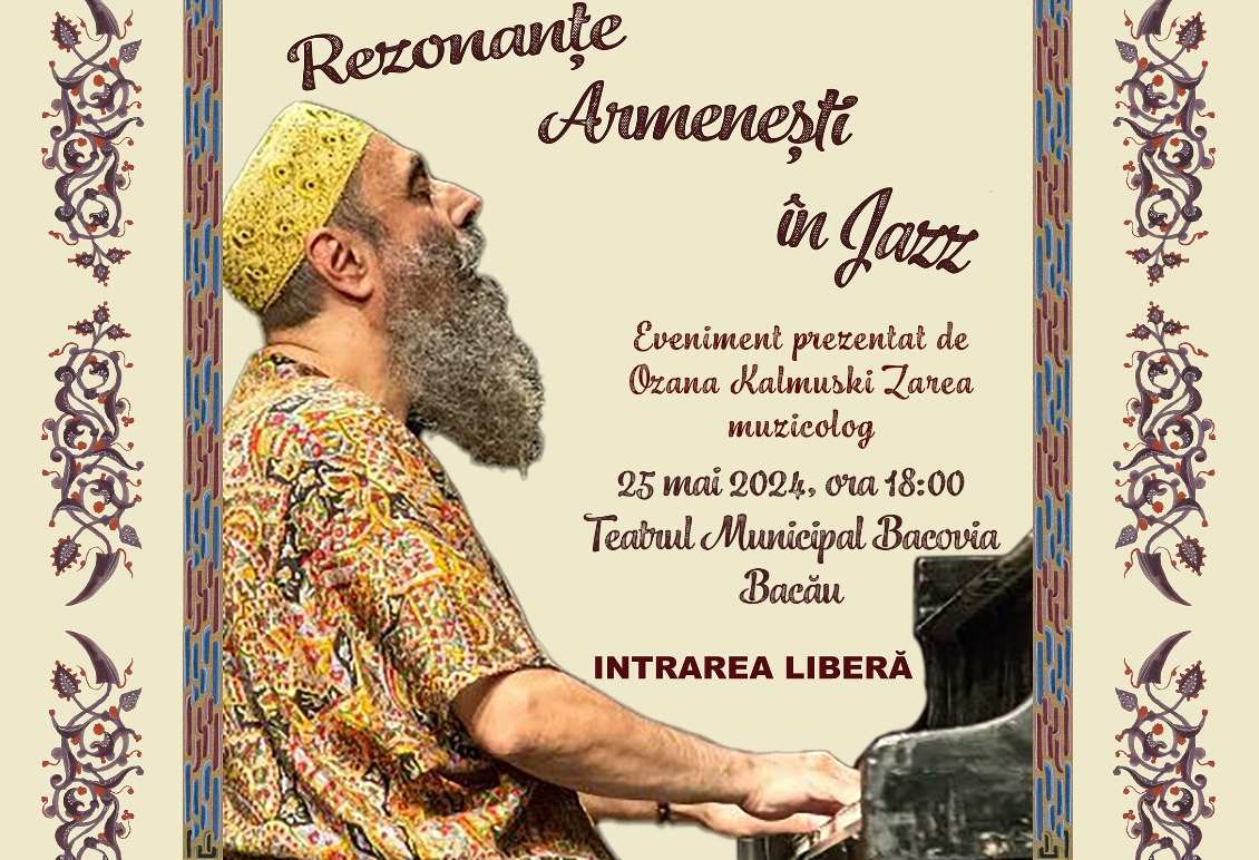La Teatrul Bacovia vom putea asculta „Rezonanțe Armenești în Jazz” – concert prezentat de excepționalul muzicolog Ozana Kalmuski Zarea. „Aștept cu bucurie să mă reîntâlnesc cu publicul băcăuan, care m-a primit de fiecare dată cu multă căldură. Compatrioții mei de la Uniunea Armenilor din Bacău sunt organizatorii acestui eveniment” – a scris pe pagina sa de Facebook artistul. La concert intrarea este liberă.