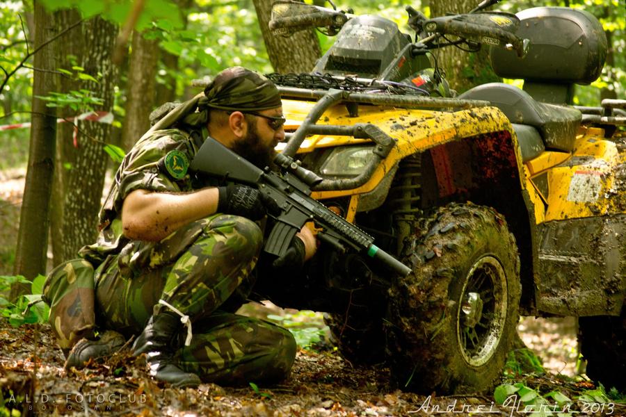Crescuse nivelul de adrenalina…! Golesc incarcatorul, vreo treizeci de bile, in toate directiile. Nimeresc cu câteva si pe cel care intrase. Strig fericit: Esti mort! E esti mort! La care aud! « Bai frate, da’ce faci? De ce tragi in mine?» Am inceput sa-mi cer scuze. Ce scuze poti sa ceri când iti impusti prietenul?!”