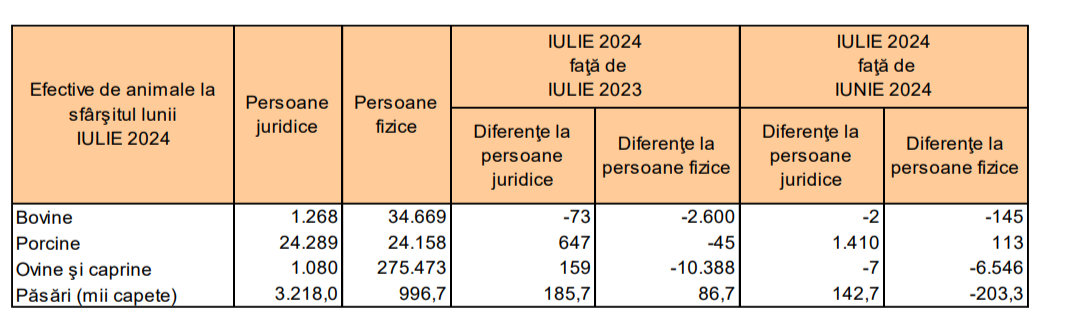 Porcinele își fac loc dar nu în gospodăriile populației! Porcii, însă, au altă poveste! Cu un total de 48.447 capete la sfârșitul lui iulie 2024, efectivele sunt în creștere cu 602 porci față de anul trecut. Persoanele juridice au dat lovitura, cu o creștere spectaculoasă de 1.410 porci față de luna iunie 2024, în timp ce persoanele fizice au pierdut 45 de capete. Se pare că fermele mari și-au consolidat poziția pe piață, în detrimentul micilor crescători.
