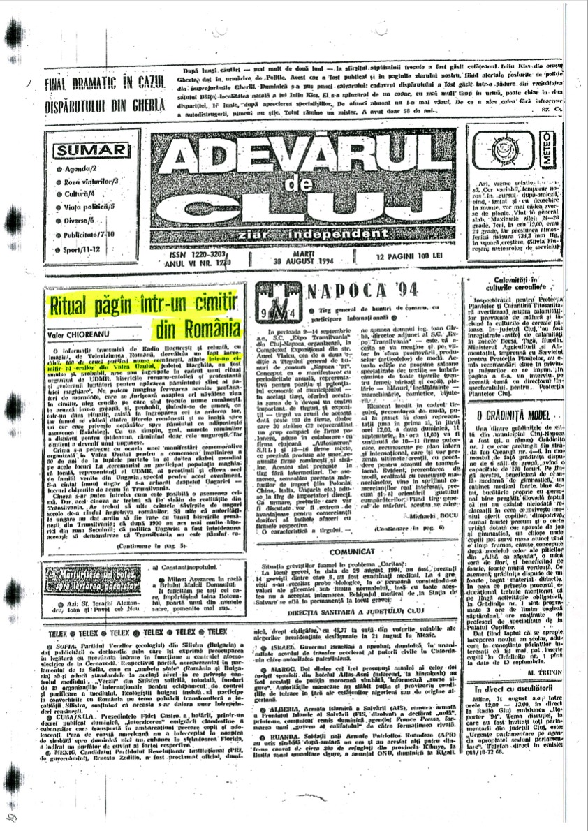 „Începând de pe de 30 august 1994 a avut loc o acțiune a comunității maghiare prin care crucile altor naționalități au fost demontate și înlocuite cu cruci pe care în prezent apar doar însemne maghiare. Evident, după această ”acțiune” din 1994, Cimitirul Internațional al Eroilor s-a transformat în cimitir maghiar. Totodată, din acel an, comunitatea maghiară din Sânmartin a început un amplu program de reabilitare a cimitirului fără să mai țină cont de cum a fost gândit în anul 1926 acest cimitir, profanând memoria celorlalți eroi care au fost înhumați acolo”, scria Ziar Harghita.