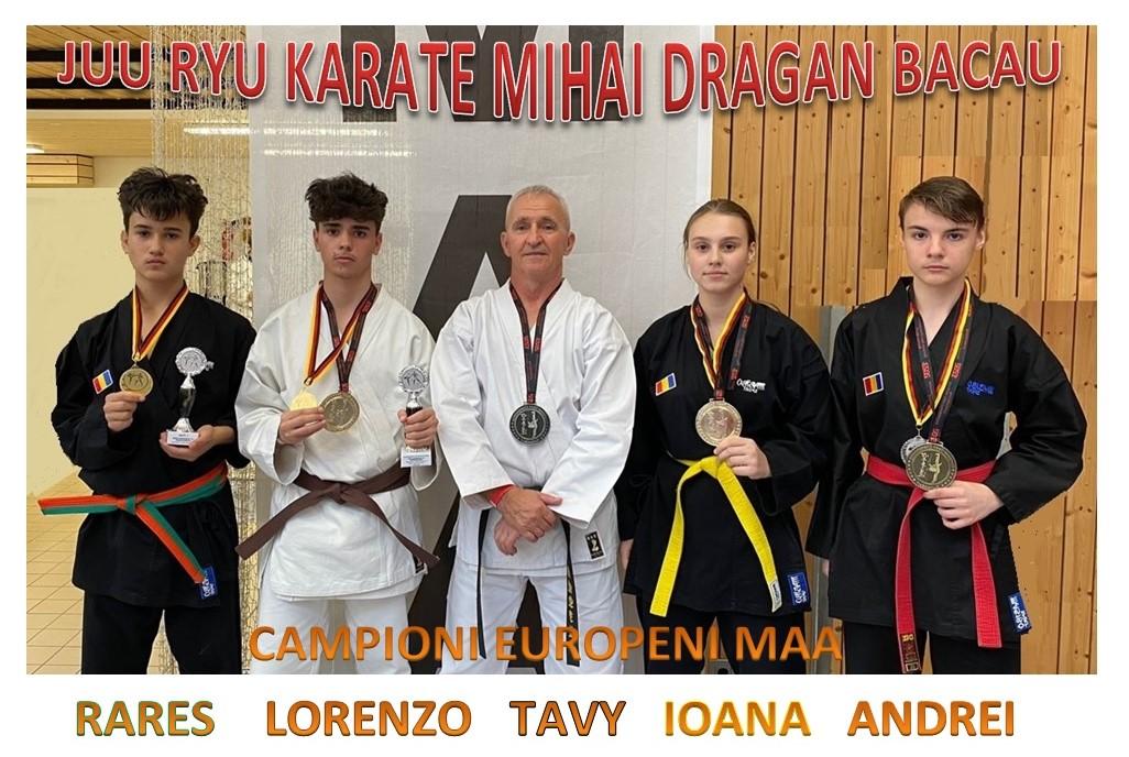 1800 km, multe probleme, bani puțini și o pasiune dusă la extrem. Rezultatul? Opt titluri de campioni europeni pentru sportivii crescuți de Octavian Adam la Kanku Dai și formați la Școala „Mihai Drăgan”, o adevărată pepinieră a sportului de performanță. Cei cinci sportivi care au reprezentat Bacăul la Campionatul European de Karate Interstiluri desfășurat luna aceasta în Germania, la Rottendorf au fost apreciați pentru măestria lor în cele trei stiluri prezentate: shotokan, godai ryu, juu ryu karate.