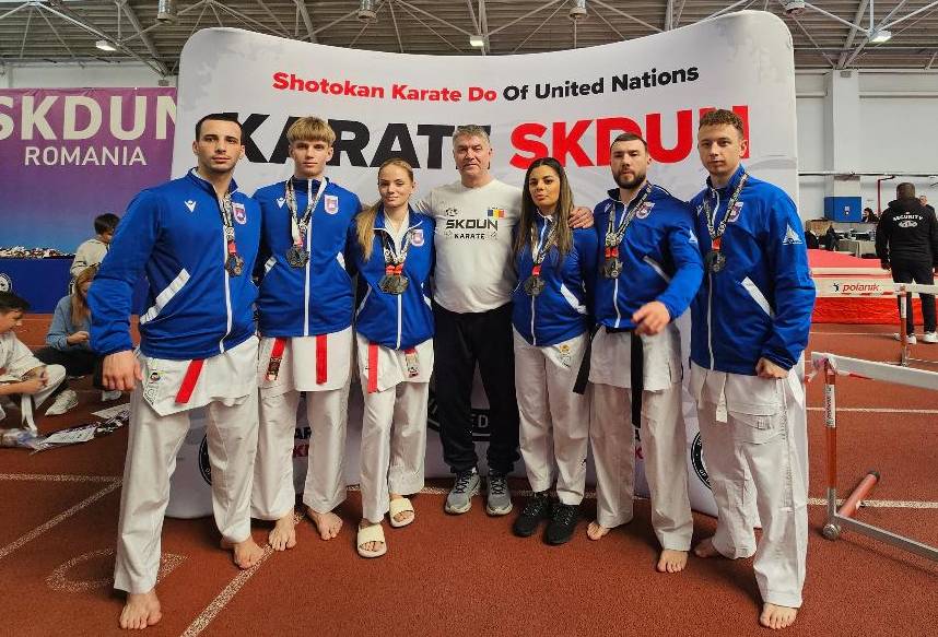 Locul 3 la kumite echipe seniori mixt (Luca Crăcea, Bianca Dumitru, Vlad Pește, Isabela Lamdes, Răzvan David).