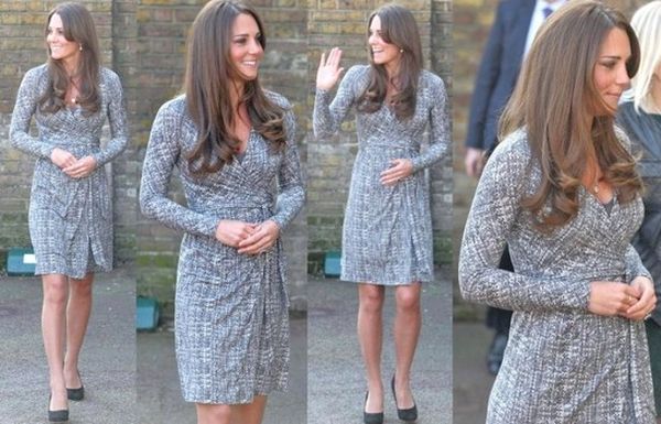 Imbracata intr-un palton de lâna si cu o atitudine foarte relaxata, Kate a lasat sa i se vada burtica de gravida. Trupul ei a ramas insa la fel de firav, Kate având o greutate de putin peste 50 de kilograme.