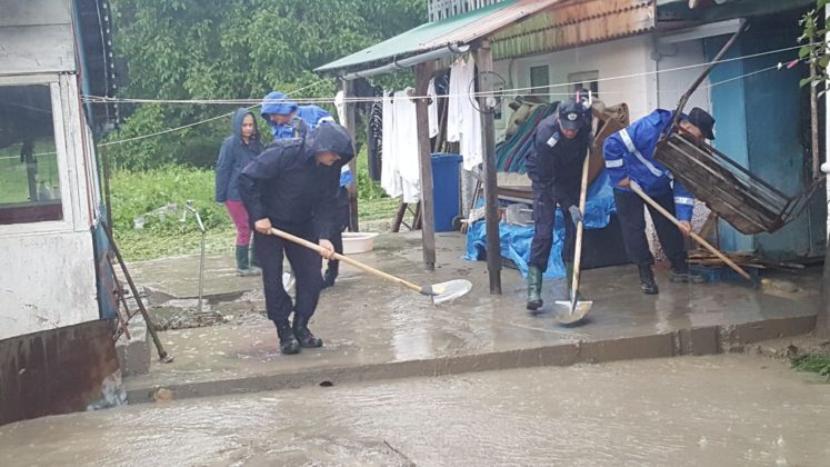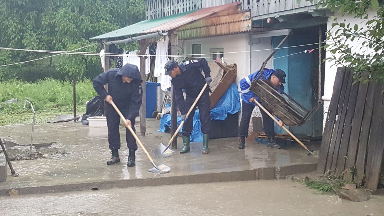 Importante efective de jandarmi, pompieri, membri ai serviciilor voluntare pentru situații de urgență și angajați ai Drumurilor Naționale intervin în județul Bacău pentru a elimina urmările inundațiilor.