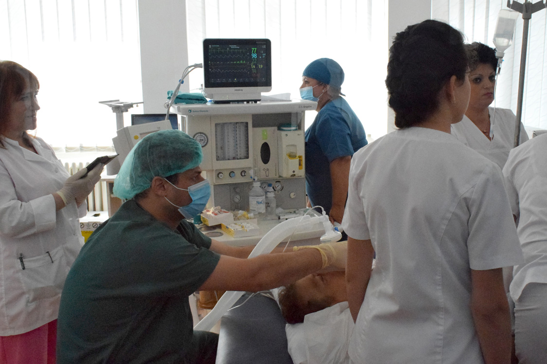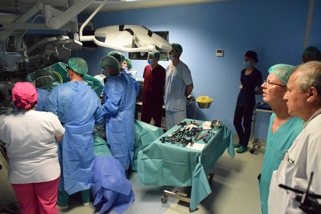Tot de joi a început și programul maraton de operații chirurgicale, care a continuat și în cursul zilei de vineri, 28 iunie. În total sunt 20 de intervenții, din sfera chirurgiei generale, a chirurgiei laparoscopice, ortopediei, chirurgiei endocrine, ginecologiei și oftalmologiei (coxartroze cu displazie de șold, hernie hiatală, tumoră suprarenală, gușă polinodulară, tumoră pancreas, cataracte, extirpare lipomatoză cervicală sub anestezie generală, carcinomatoză pleurală și polipectomii). Cazuri selecționate, deloc ușoare, ce beneficiază de expertiza unor echipe complexe formată din medici chirurgici, cu rezultate foarte bune pe aceste patologii. Sunt cazuri de o complexitate foarte mare, unele dintre ele cu o durată de intervenție de peste 5 ore. Toate operațiile au fost transmise live, prin rețeaua de telemedicină, în sala de conferințe, unde toți cei prezenți au putut vedea în direct intervențiile din cele 4 săli de operații.