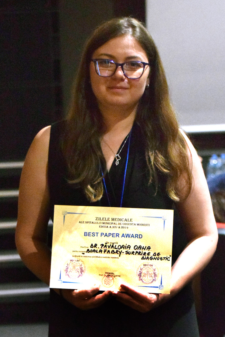 A fost apoi și un curs de Gastroenterologie, dar și o Sesiune științifică dedicată medicilor rezidenți, care au urmărit 9 prezentări de lucrări, iar cea mai bună lucrare a fost premiată în cadru festiv. Câștigătoare a fost desemnată dr. Oana Păvăloaia, cu lucrarea „Boala Fabry – surprize de diagnostic”.