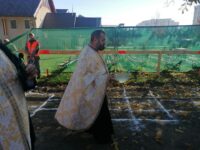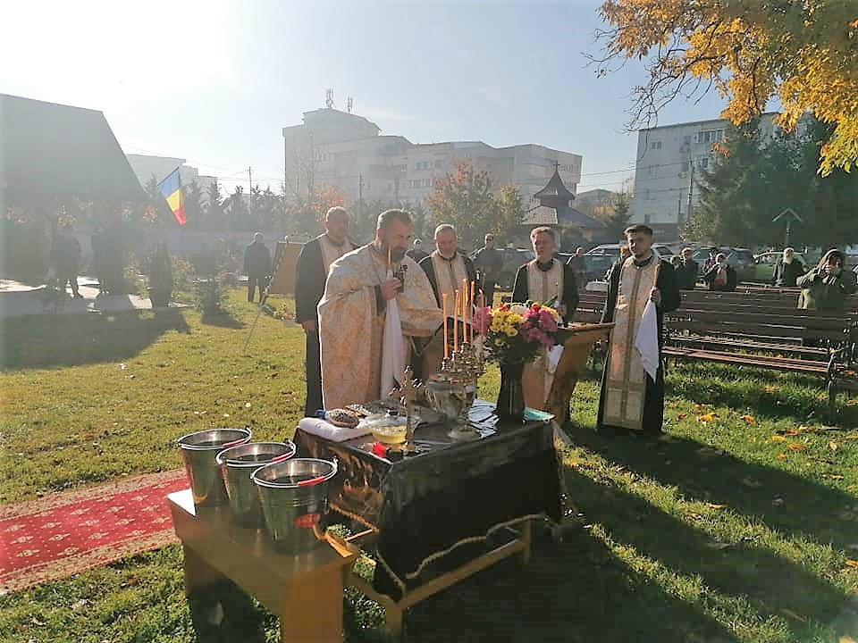 Sfințirea locului noii biserici a fost organizată de preotul paroh Nicolae Zaharia, care a reunit preoți din Protopopiatul Onești și care, alături de prea-cuviosul părinte protopop au oficiat slujba de sfințire a apei și a untdelemnului, stropind apoi fiecare colț al pământului pe care va fi zidit noul locaș de cult.